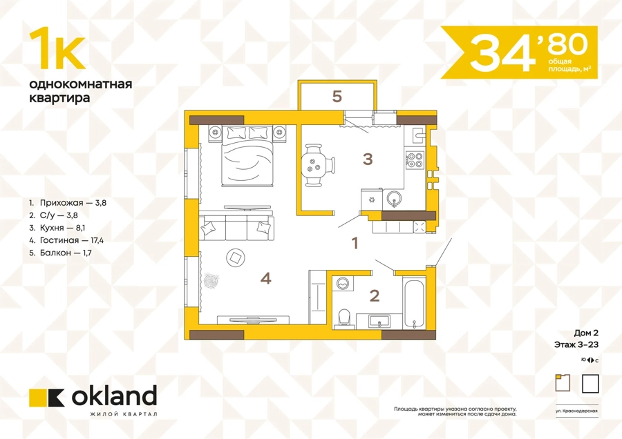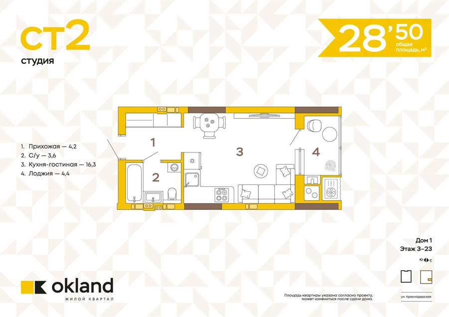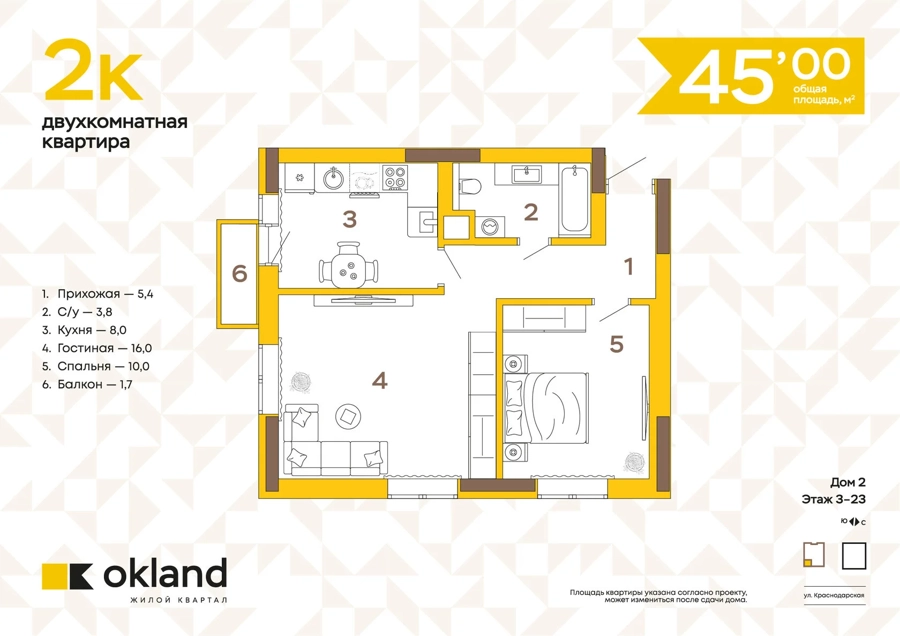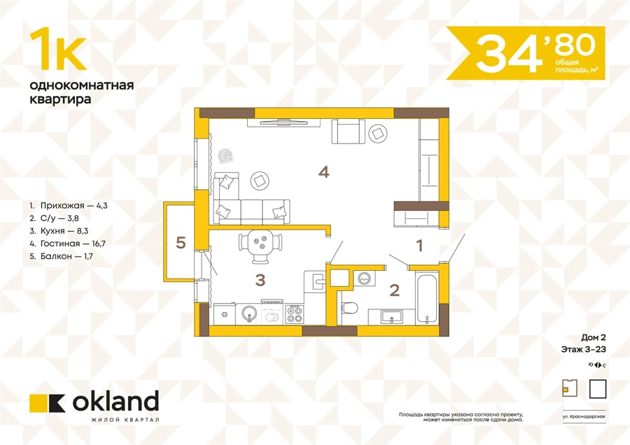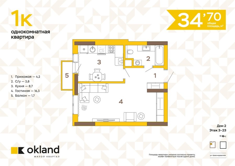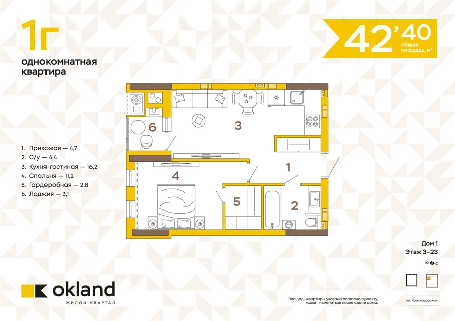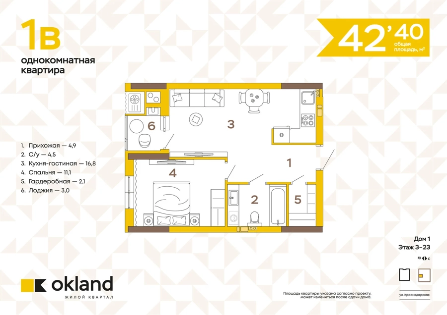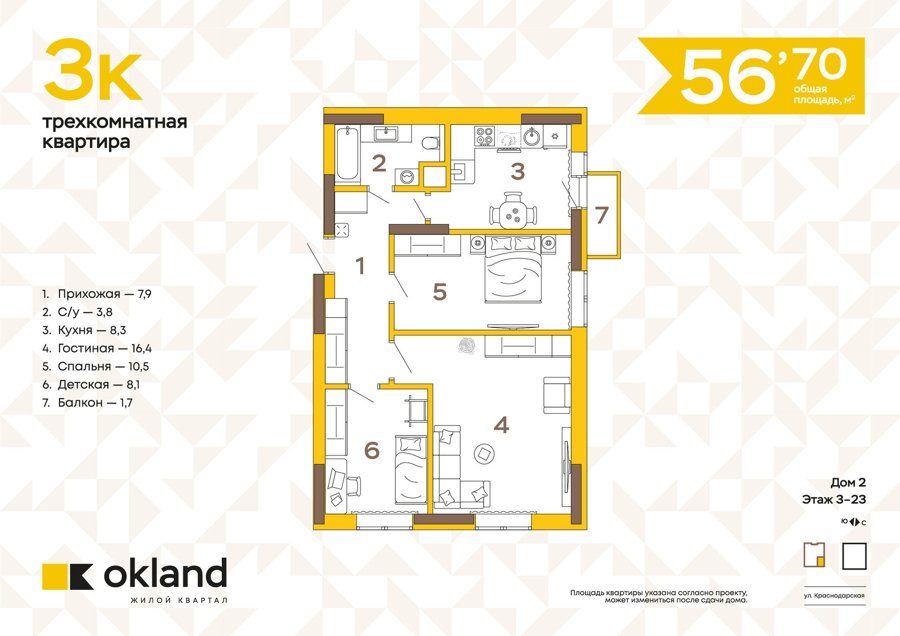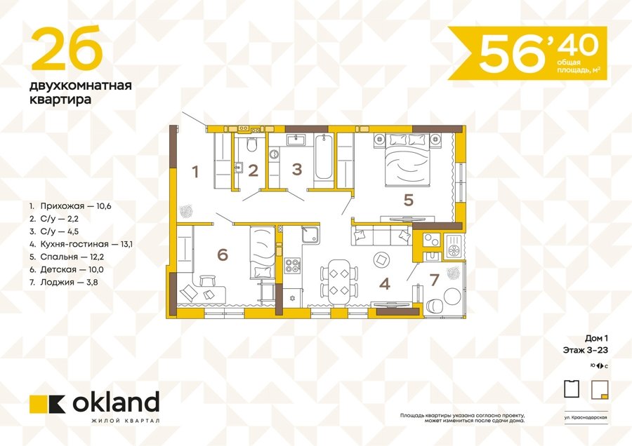 Квартал расположен всего в 5 минутах от крупной транспортной артерии — улицы Николая Островского, что обеспечивает жителям удобный доступ к ключевым объектам города. При этом Okland пропитан атмосферой пригорода, где можно наслаждаться тишиной, природой и спокойствием. Проект создан для тех, кто ценит баланс между динамикой большого города и уютом спального района.