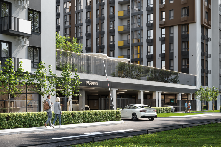 Архитектура создаёт тёплое настроение: фасады натуральных оттенков мягко сочетаются с окружающим ландшафтом. Автопарковки за пределами дворов, велодорожки внутри и снаружи домов. В домах и по периметру установлены видеокамеры. Воркаут-площадки с уличными тренажерами и безопасной прорезиненной поверхностью. Две очереди проекта обеднены единым двором на стилобате.