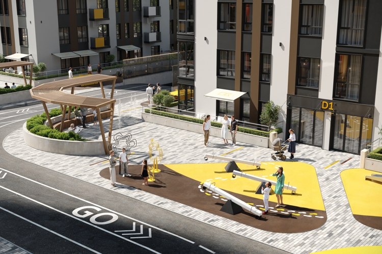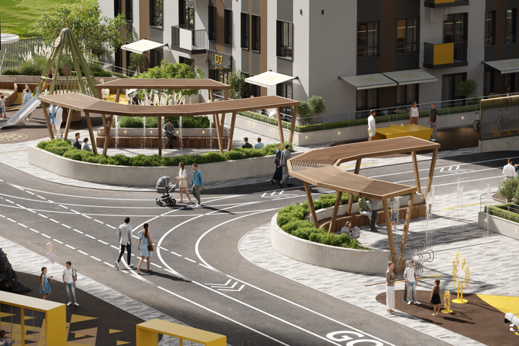 Здесь есть все, что нужно для отдыха: кофейни, игровые и спортивные площадки, бизнес зоны, большой паркинг и интересные веломаршруты. Двор на II уровне, единый двор-парк с прогулочным бульваром и зонами отдыха с удобными скамейками. Атмосферно, свободно, красиво — всё это в ваших квартирах! А еще, каждом доме запроектированы квартиры с просторными террасами на первом этаже, которые будут дополнением вашему уюту.