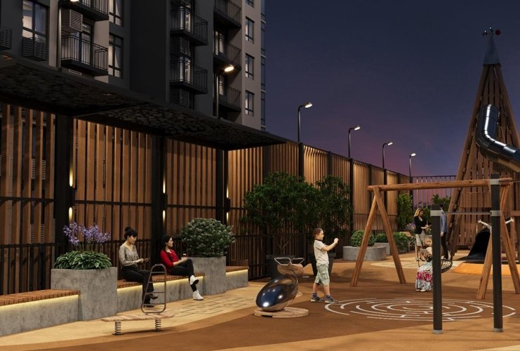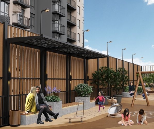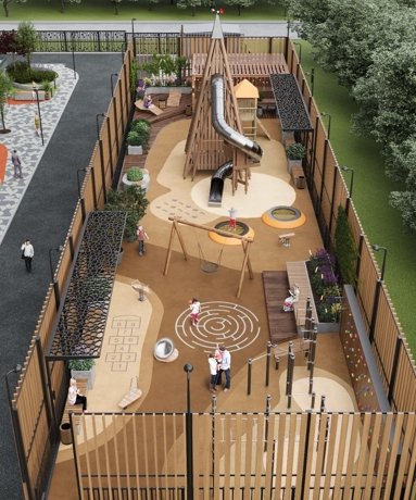 Scandinavia нашла своё применение в декоративной стороне благоустройства. Предпочтение отдано природным материалам оборудования и покрытий. Озеленение спроектировано по принципу всесезонности и будет радовать жителей красками круглый год. Детские площадки зонированы по возрастам и оснащены соответствующим оборудованием, которое имеет различное возрастное ограничение. Для определения границ этих зон использованы различные цвета резинового покрытия, а также создана красивая изгородь. Главным критерием при создании инфраструктуры для самых маленьких жителей комплекса является безопасность, которая при этом не ограничивает активность детей. Родителям не о чем беспокоиться!