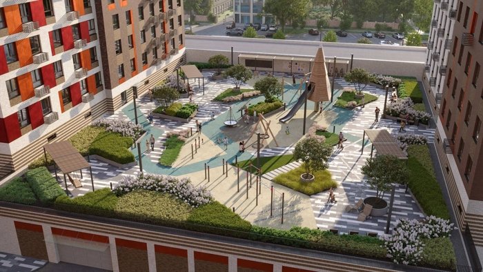 В ЖК квартиры располагаются так, что из окон открывается вид на Волгу с одной стороны, а с другой стороны на город.