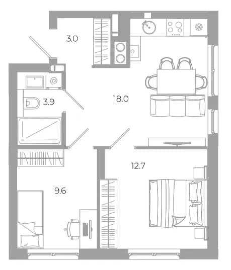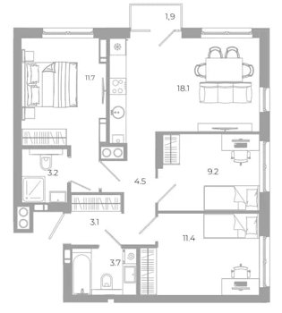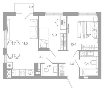 Площадь от 31.7 м2