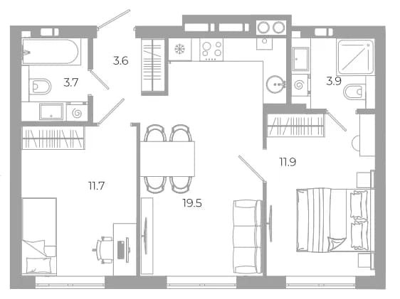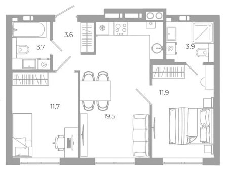 Площадь от 64.7 м2