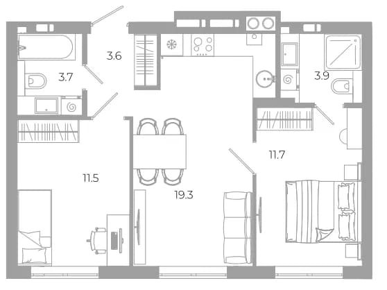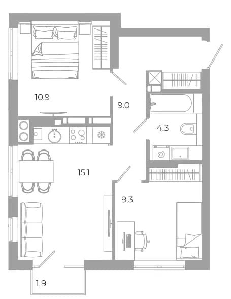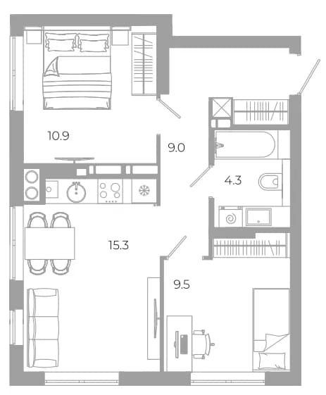 Площадь от 47.2 м2