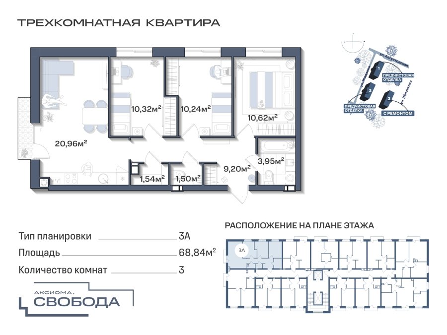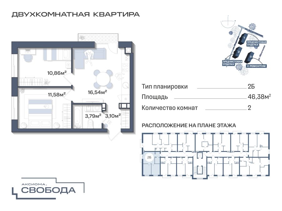 Аксиома Свобода – это три одиннадцатиэтажных одноподъездных дома комфорт-класса выполнены в стиле неоклассики с элементами хай-тек